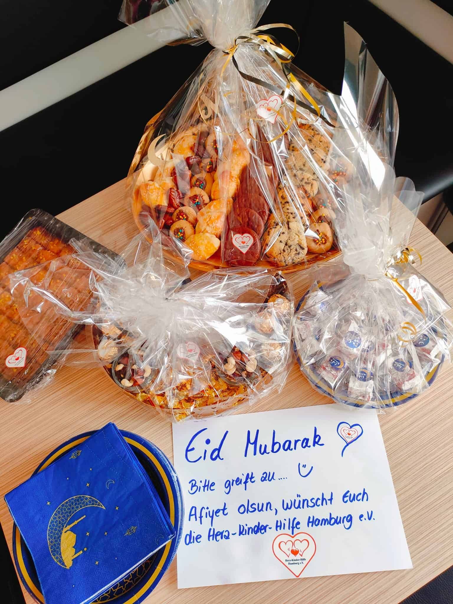 Zum Fastenbrechen am Ende des Ramadan wünschen wir allen Herzkindern und ihren Eltern sowie Freundinnen und Freunden ein gesegnetes und friedliches Zuckerfest. Die Herz-Kinder-Hilfe hat für unsere muslimischen Herzkinder mit ihren Familien auf der Kinder-Herzstation viele liebevoll verpackte kleine Leckereien dazu vorbereitet.