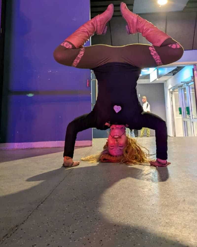 Ein Highlight aus unserer Mitgliederschaft? Annes Tochter hätte problemlos mitturnen können – Handstand und Handstandfiguren waren eindeutig ’turnfestreif‘ – siehe Fotos.